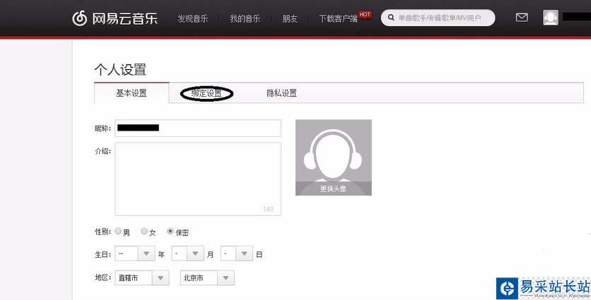 3、在“個(gè)人設(shè)置”頁(yè)面,選擇點(diǎn)擊“綁定設(shè)置”