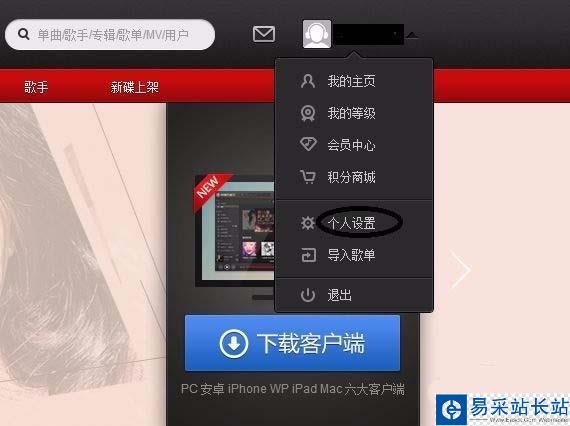2、在用戶賬號(hào)下拉菜單中選擇“個(gè)人設(shè)置”,點(diǎn)擊進(jìn)入