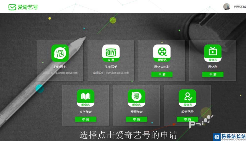3、然后會出現很多個選項,因為我們是視頻專輯制作需要,所以,我們只需要找到愛奇藝號,點擊