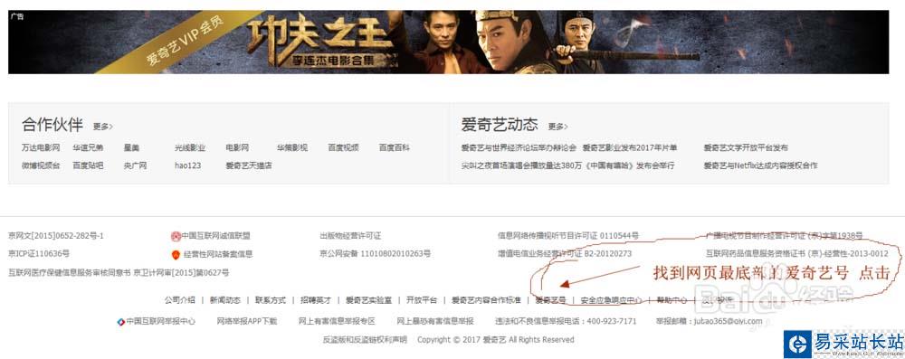1、我們先登錄愛奇藝 ,在視頻首頁找到最底部的信息登記欄,找到愛奇藝號,然后點擊