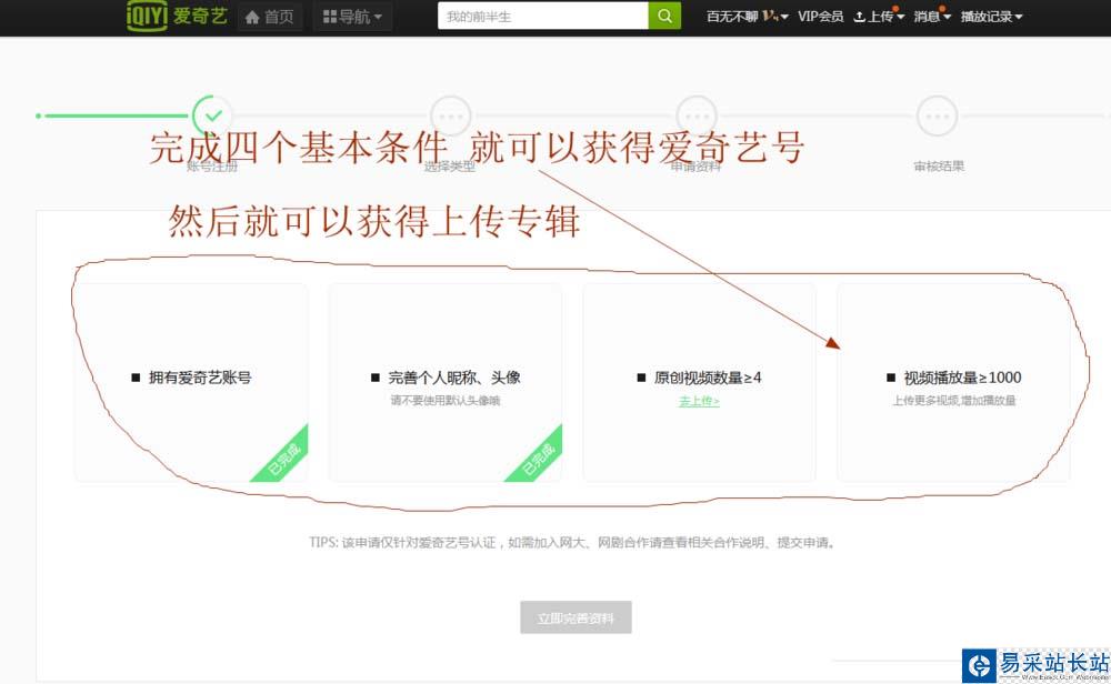 4、然后我們就可以查看自己的符合條件了,滿足條件以后,我們就可以將自己創作的視頻上傳專輯了, 因為每個人的符合條件都不一樣,所以按要求完成所以條件就完成了