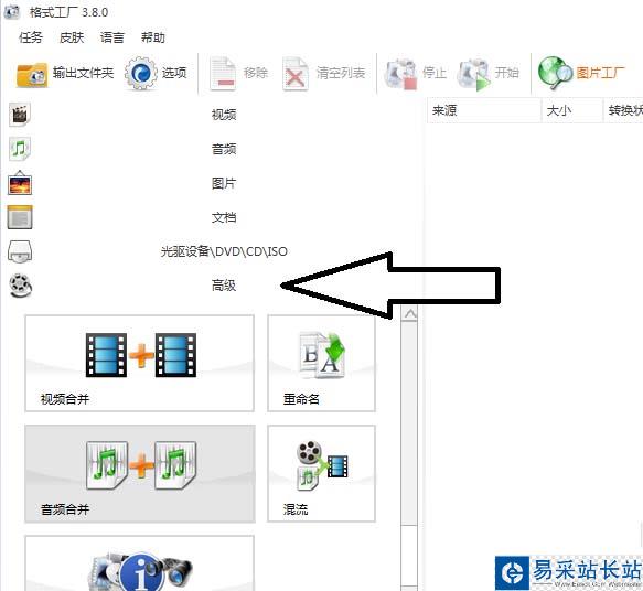 5、打開”格式工廠軟件“,單擊”高級“,如圖。