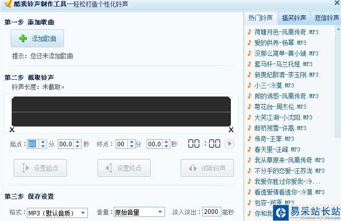 4、單擊”添加歌曲“,然后可以百度一下,制作手機鈴聲,裁剪好自己的音樂,一定要記住保存的文件夾。同理再裁剪別的一首歌曲。如果需要完整的歌曲,可以跳過1~4步驟。