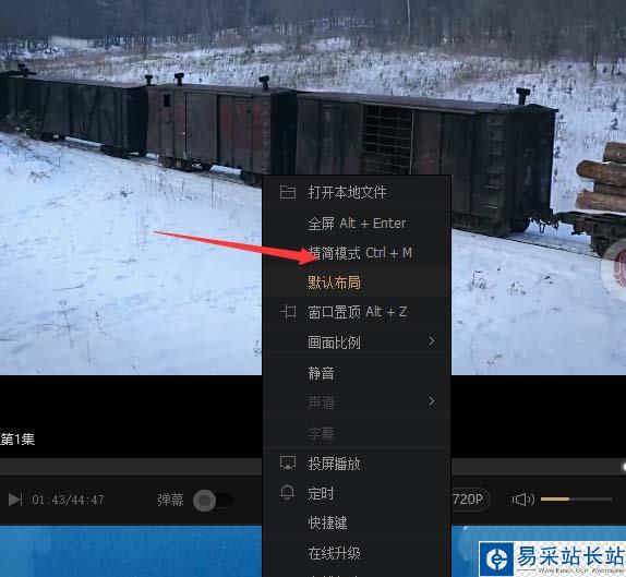 3、隨便找一個視頻播放,鼠標右鍵點擊精簡模式