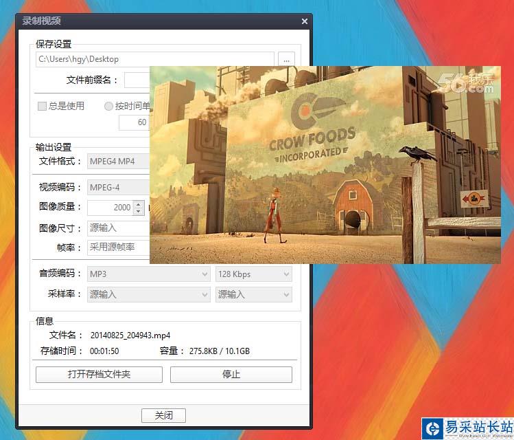 7、在截取視頻結束時再暫停視頻播放。并且點擊“停止”按鈕。這一段視頻就截取在存檔文件夾里了。