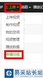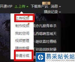 2、登錄之后,選擇右上角的“上傳”(包括上傳視頻、視頻管理、申請(qǐng)分成等等),選擇相應(yīng)按鈕。