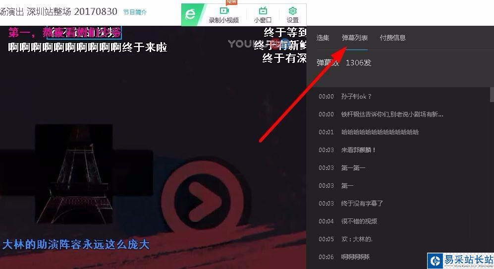 5、視頻打開后點擊右邊的彈幕列表