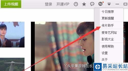 7、接下來我們再次點擊客戶端右上角的選項按鈕,在彈出菜單中選擇“傳片助手”菜單項