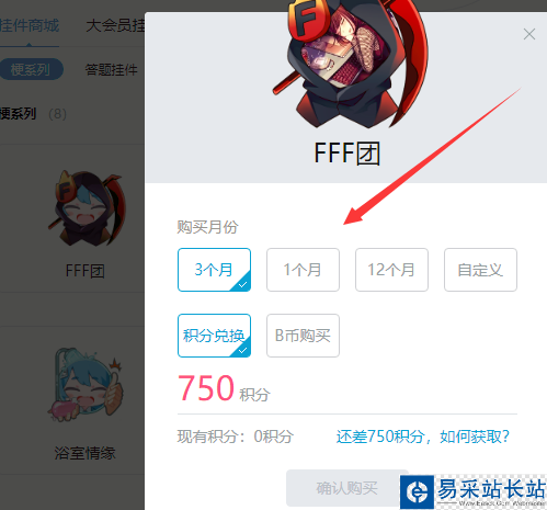 5、假如你沒有積分但你是大會員,可以點擊【大會員掛件】,這些不用積分購買,是大會員專屬的