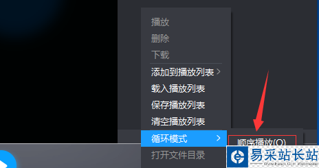5、進行點擊了循環模式的選項之后,彈出了下一級菜單選中為順序播放的選項。