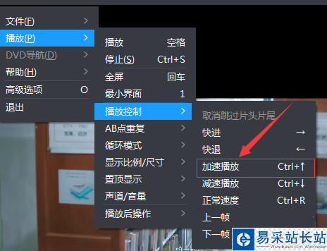 5、進行點擊了播放控制的選項之后,彈出了下一級菜單選中為加速播放的選項。