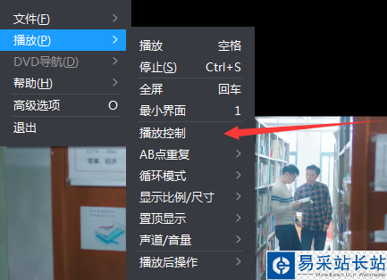 4、進行點擊了播放選項之后,彈出了下一級菜單選中為播放控制的選項。