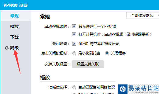 4、選中了設(shè)置的選項(xiàng)之后,彈出了pp視頻設(shè)置的選項(xiàng)之后,選中高級的選項(xiàng)。