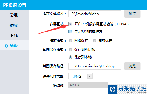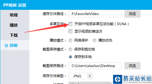 5、選中了高級的選項(xiàng)之后,勾選上 開啟pp視頻多屏互動功能的選項(xiàng)。
