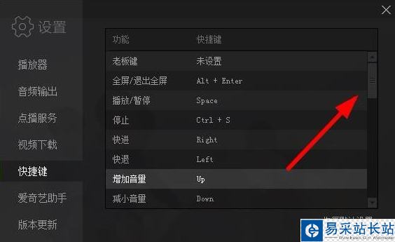 在電腦上打開愛奇藝播放器,進入設置頁面,點擊快捷鍵選項。