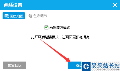 5、勾選上了畫質(zhì)增強(qiáng)模式的選項(xiàng),點(diǎn)擊確定保存設(shè)置。