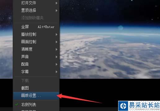 2、在PPTV播放器的右鍵操作,彈出了下拉菜單選中為畫質(zhì)設(shè)置的選項(xiàng)。