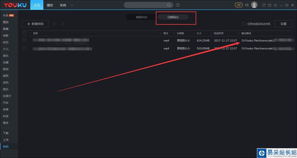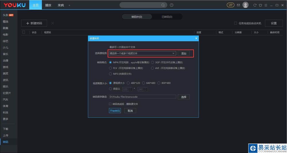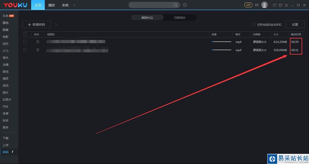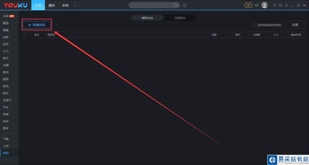 1、打開優酷客戶端,點擊左側的功能“轉碼”標簽;