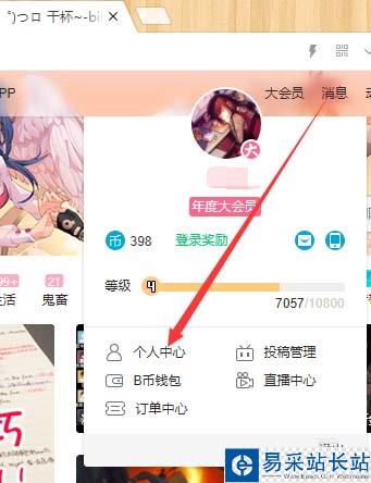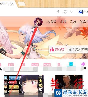 2、然后將鼠標光標移到B站頭像處,不用點擊,移到即可