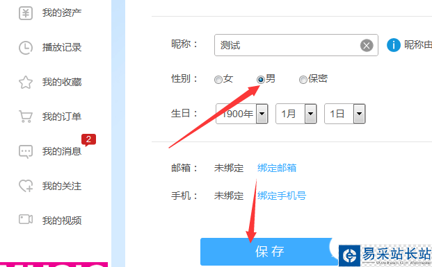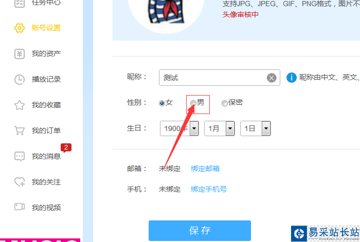 5、勾選上男的選項之后,點擊保存的設(shè)置。