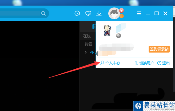 1、首先,打開一個PPTV播放器的界面當(dāng)中,點擊已經(jīng)登錄的賬號。