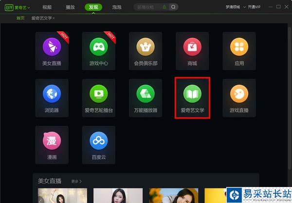 3、等到切換到發現以后,在發現中點擊“愛奇藝文學”。