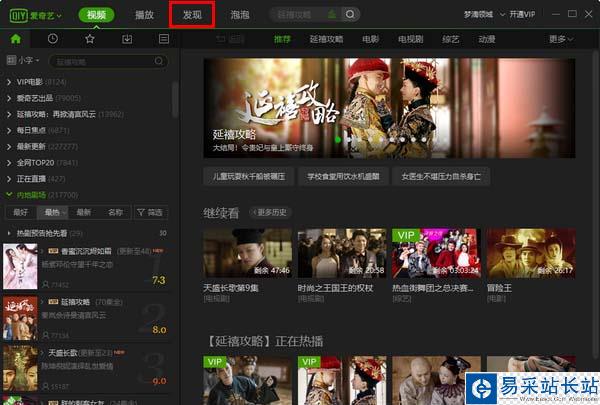2、打開愛奇藝的主界面以后,點擊主界面導航欄上的“發現”。