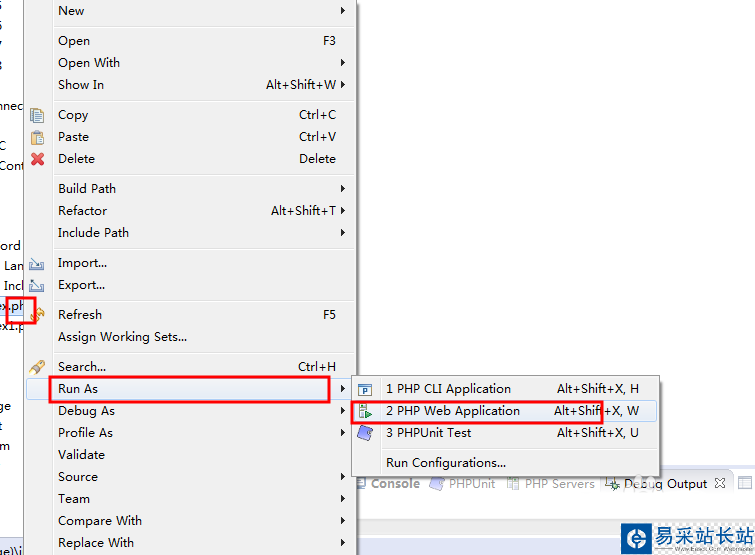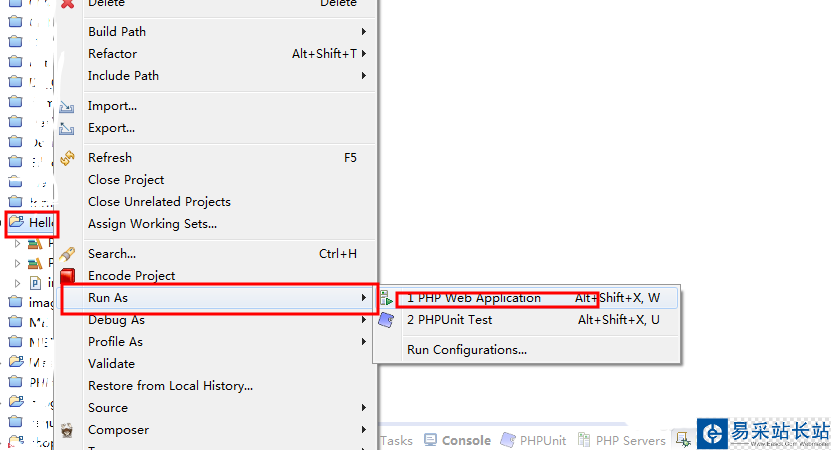 1、右鍵選擇項目名稱 依次選擇Run As -->PHP Web Application