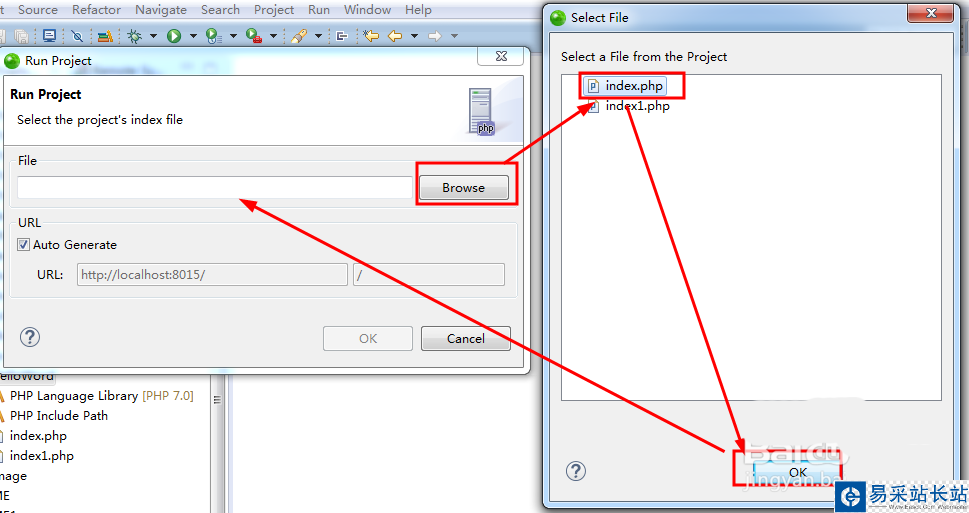 2、然后,在新的彈窗口中選擇Browser,選擇你想要運行的PHP文件,點擊OK按鈕
