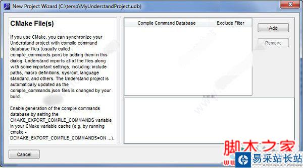 7、單擊添加并選擇一個compile_commands.json文件。CMake File(s)頁面左邊的文本解釋了如何使用CMake來生成編譯命令數據庫文件。 您可以根據需要添加多個文件。 然后點擊下一步。