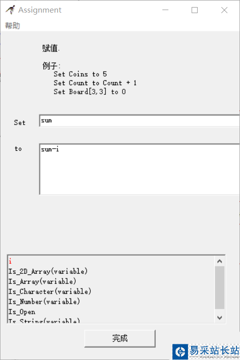 在賦值框3上方輸入 sum 下方輸入 sum-i