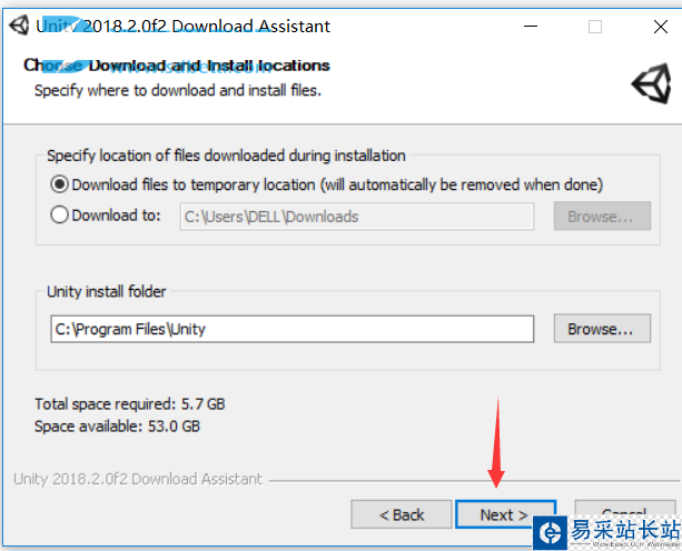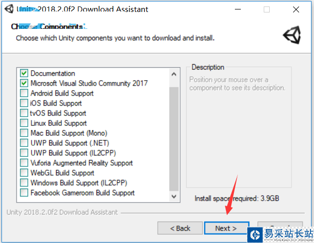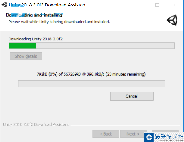 2.首先安裝原版,雙擊UnityDownloadAssistant-2018.2.0f2.exe運行,點next繼續