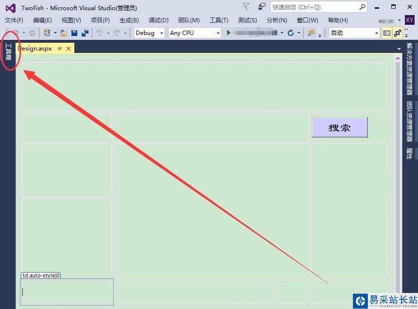 1、Visual Studio頁面中,選擇工具箱選項(xiàng)。