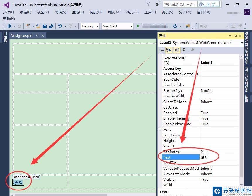 4、Text標(biāo)簽處,可以更改控件顯示的文本,本例改為聯(lián)系。
