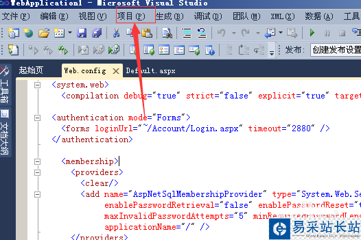1、visual studio的進行的打開代碼的編輯器當中,進行點擊菜單中的 項目 選項。