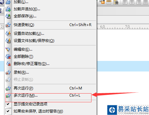 3、進行點擊宏之后,彈出了下拉菜單選中為多次運行的選項。