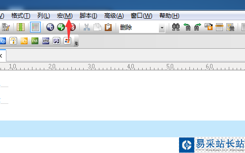 2、在編輯的進行選中運行宏的位置之后,進行點擊菜單中的宏的選項。