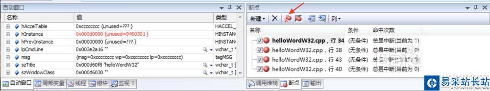 6、當不需要單步調試的時候,點擊下圖標示的圖標,可以刪除所有的斷點