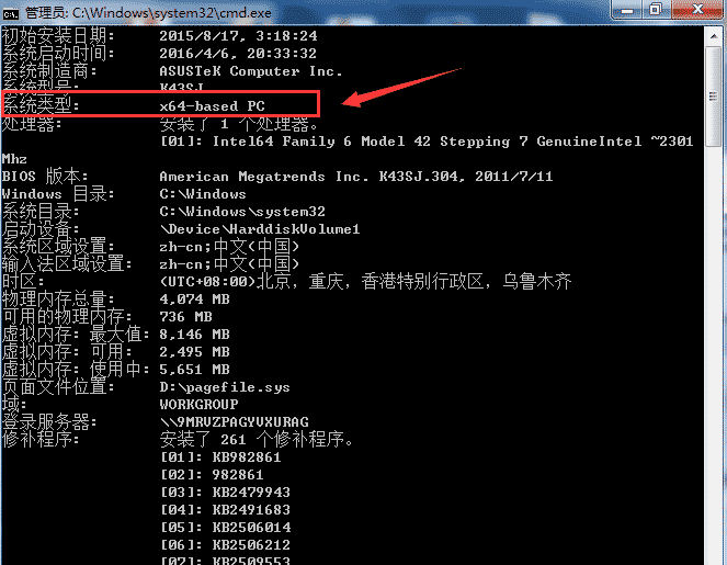按Win+R運行cmd,輸入systeminfo后回車,稍等片刻,會出現一些系統信息。在“系統類型”一行中,若顯示“x64-based PC”,即為64位系統;若顯示“X86-based PC”,則為32位系統。