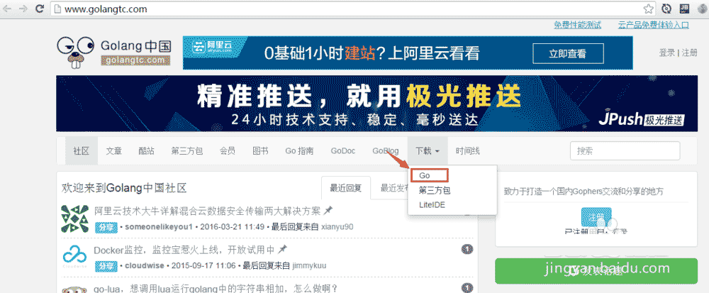在打開的網頁中找到并點擊“下載”,在下拉的選項中選擇“Go”點擊;