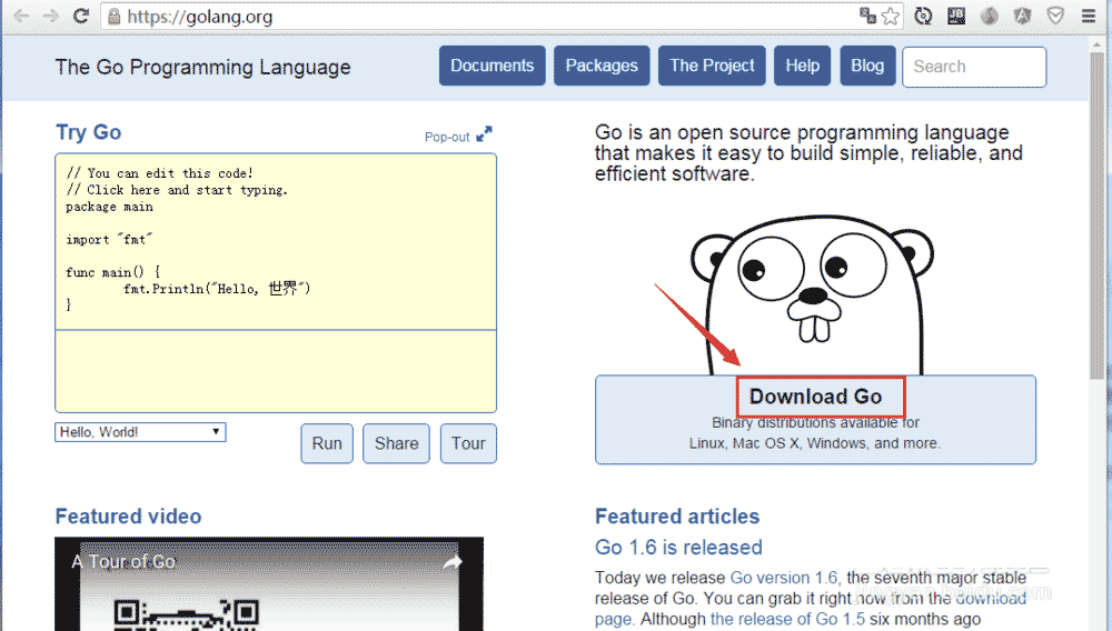 打開Go官網,找到并點擊“Download Go”,在打開的下載頁面中找到