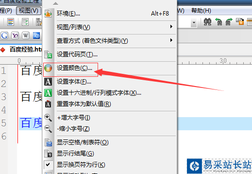 3、進(jìn)行點擊了視圖菜單中之后,進(jìn)行選中下拉菜單中的“設(shè)置顏色”的選項。