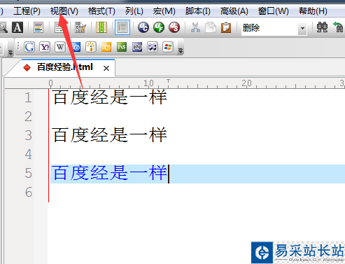 1、首先,進(jìn)行打開一個UltraEdit的軟件工具之后,進(jìn)行代碼的編輯器當(dāng)中,進(jìn)行選中文字。