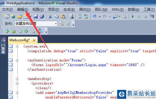 3、在visual studio的界面當中,進行點擊菜單中的“編輯”的選項。