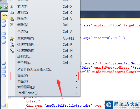 4、點擊編輯的菜單中之后,彈出了下拉菜單中,進行選中為“高級”的選項。