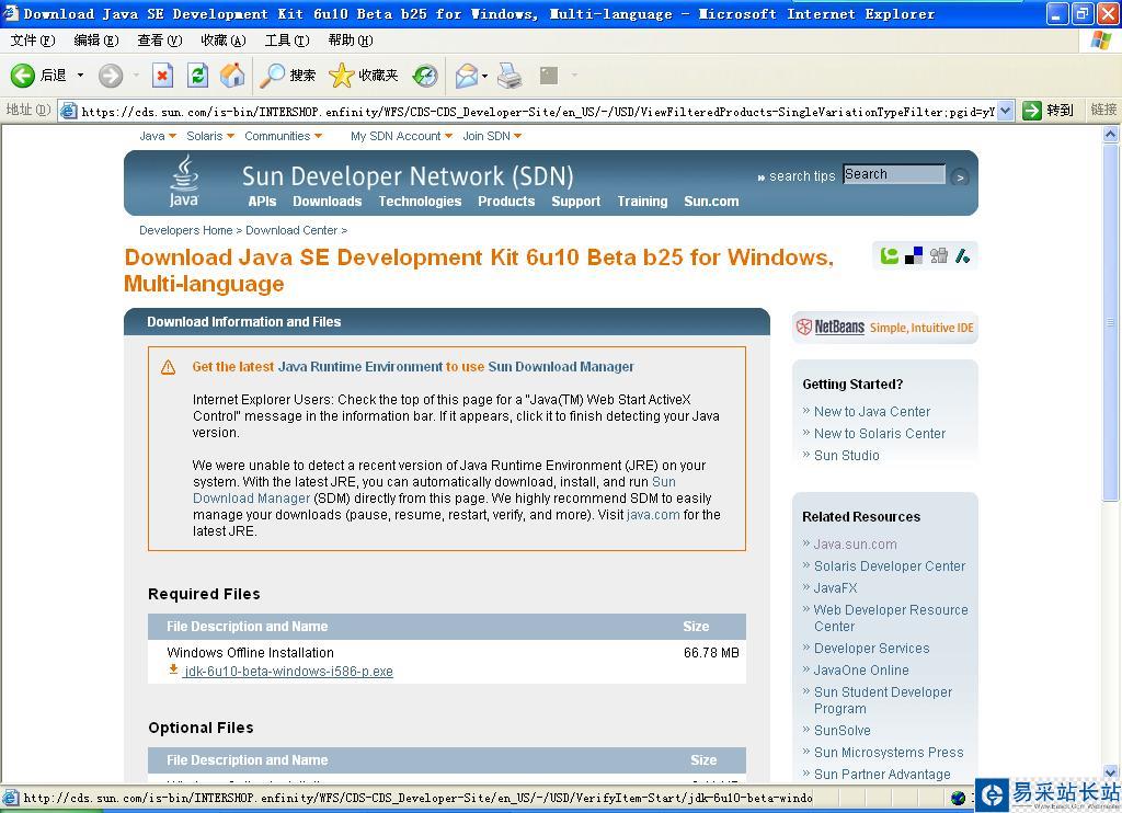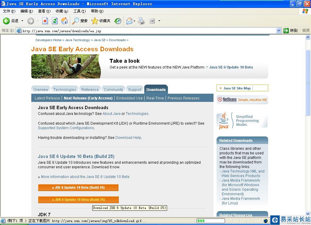 點擊Java SE 6 Update 10 Beta 后面的Download按鈕,在接下來頁面中選擇JDK 6。