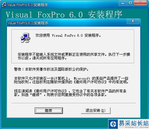 6、Visual FoxPro 6.0 安裝程序,選擇“繼續(xù)”。