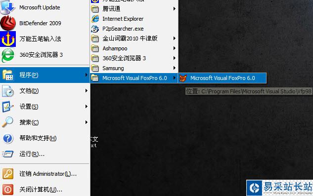 12、從開始菜單->程序里找到Visual FoxPro 6.0,如下圖