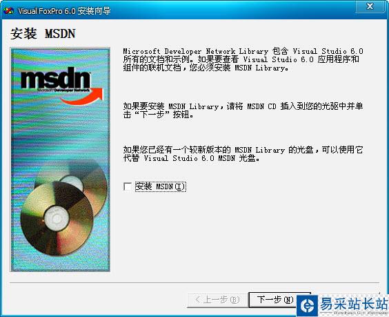 10、一點小狀況,這個版本是沒有帶MSDN 6.0的,這一步是安裝MSDN,不要選擇“安裝 MSDN”。
