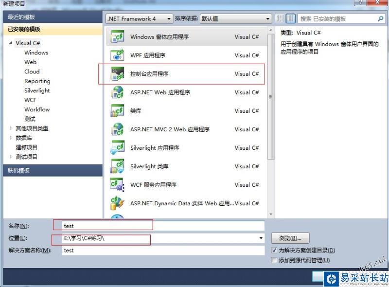 如上圖,選擇控制臺應用程序,根據需要也可以選擇窗體應用程序或webz應用程序,然后命名,選擇保存路徑即可